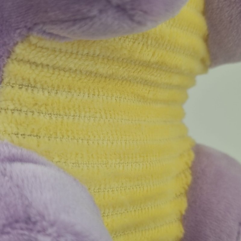 Confeccionado em pelúcia 100% poliéster atóxico, hipoalergênico e lavável.